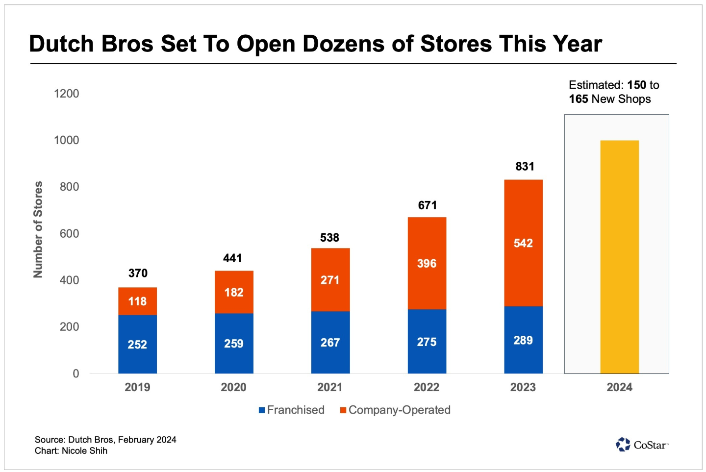 더치브로스는 코로나 이후 적극적으로 매장을 확장하는데 주력하고 있다. '23년 한 해 동안에는 매장이 160개가 증가했고 '24년에도 150~165개 증가해 총 매장수 1,000개를 바라보고 있다. 또 회사는 기존에 집중했던 미국 서부 지역뿐만 아니라 최근에는 미주리, 켄터키, 앨라배마 등 동남부 도시로도 확장하고 있으며 10~15년 안에 4,000개까지 매장 수를 대폭 늘릴 계획이다.