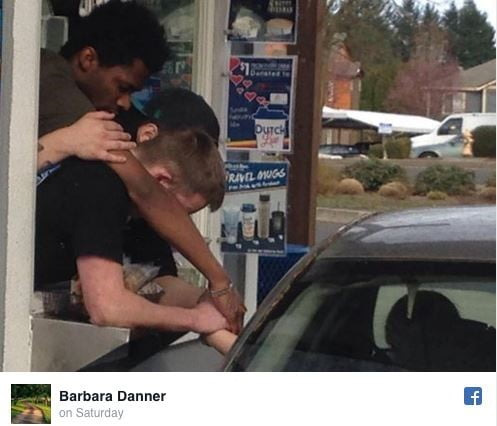 지난 2016년 페이스북을 통해 화제가 된 사진이다. 더치브로스 직원들이 고객이 전날 남편과 사별한 것을 듣고 동료들과 손을 잡고 기도하는 장면이었다. 고객을 최우선으로 하는 직원들의 태도에 많은 사람들이 감동했고, 더치브로스가 유명해진 계기가 되었다.