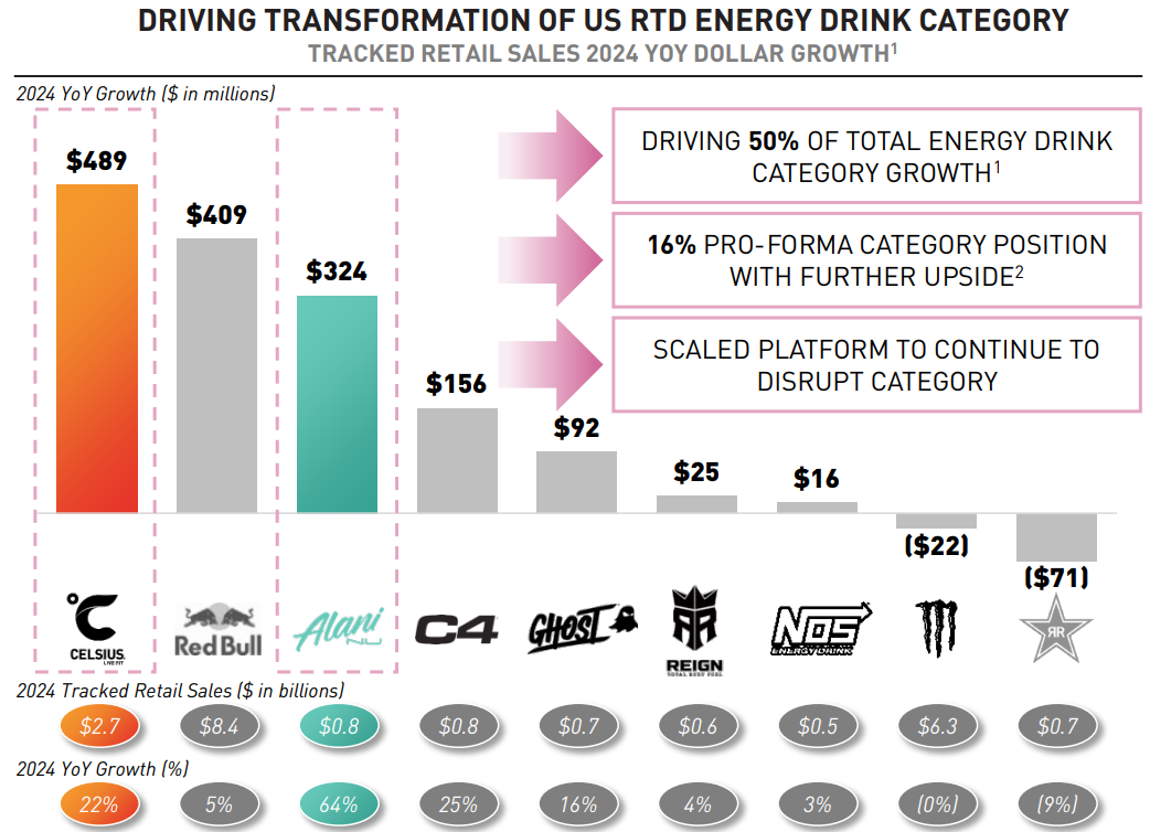 셀시어스(Celsius)는 알라니(Alani Nu)를 18억 달러에 인수하는 최종 계약을 체결했다. 미국 에너지 드링크 시장에서 성장하고 있는 두 브랜드를 결합해 소비자들의 무설탕 에너지 드링크 선호 증가에 따른 시장 기회를 적극적으로 활용할 예정이다.