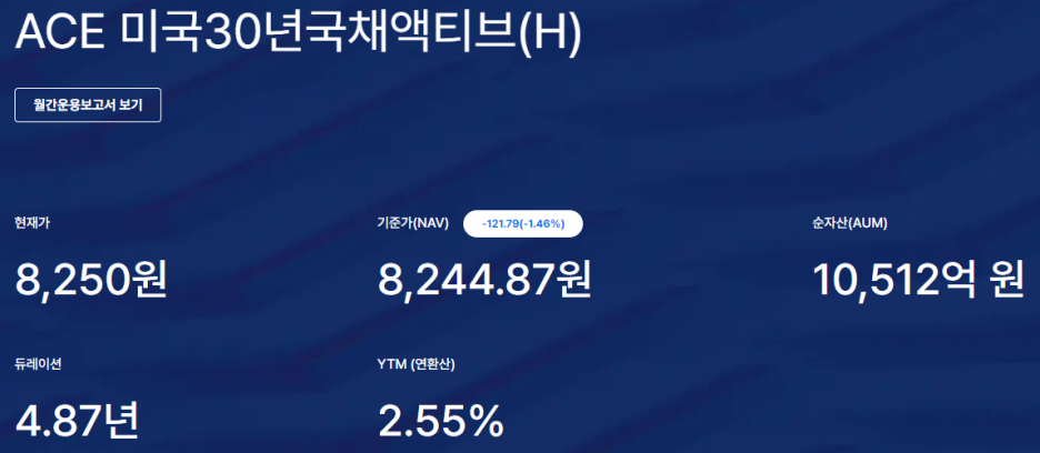 국내에 상장한 ETF중 미국 장기채에 투자하면서 엔화에 노출시키는 상품은 대표적으로 'KBSTAR 미국30년국채엔화노출(합성 H)'과 'ACE 미국30년국채엔화노출액티브(H)'가 있다. 두 ETF의 총보수는 각각 0.171%, 0.1284%이며 세금에 관한 부분은 위 2. 엔화 ETF와 같다.